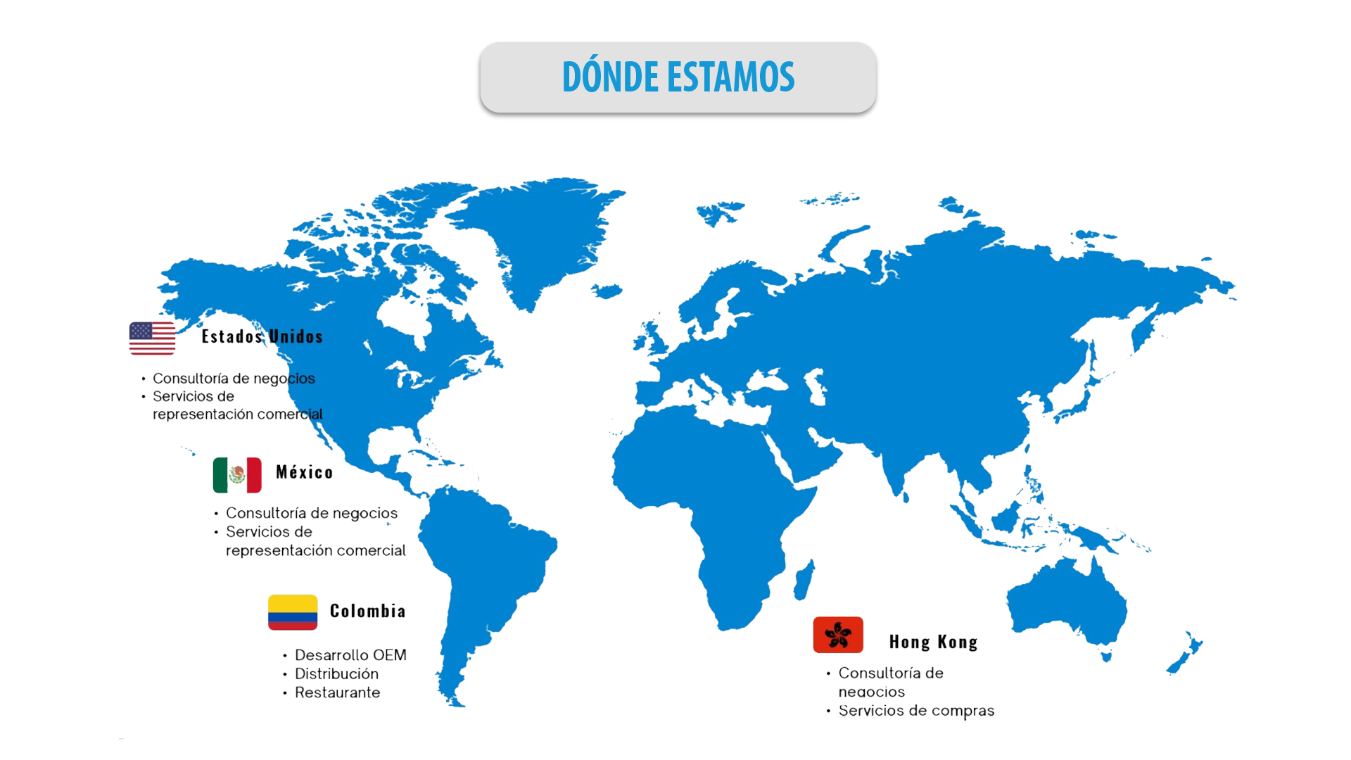 Nuestros clientes cuentan con la mejor asesoría y procesos claves para llevar sus negocios a un nivel más alto con productos innovadores y competentes en el mercado global y local También ofrecemos un apoyo crucial a organizaciones de diversas industrias que buscan ingresar o expandirse en el mercado colombiano y carecen de experiencia en este campo.